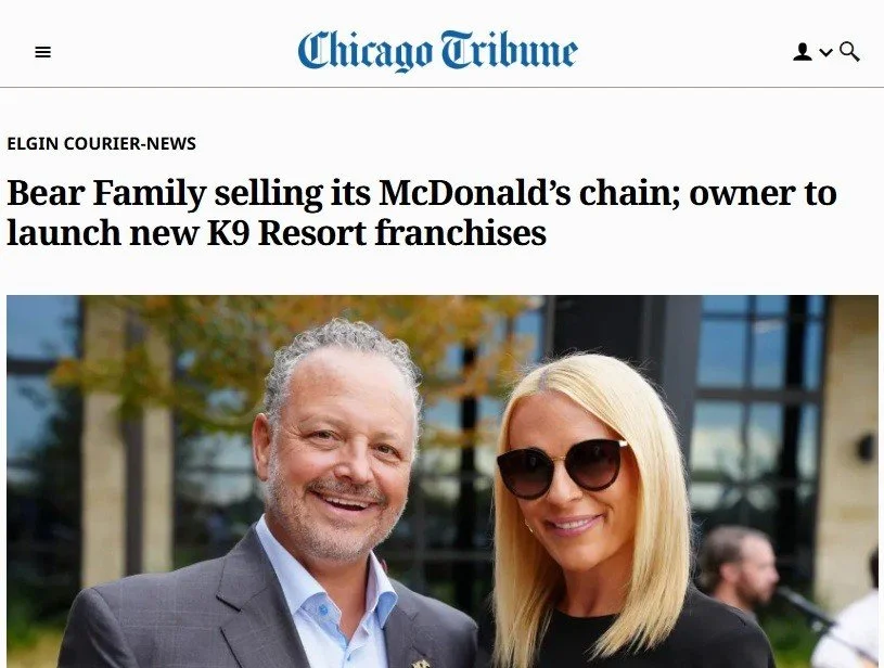 12.12.2025 - South Elgin's Bear Family Restaurants is selling all of its McDonald's restaurants. Owner David Bear plans to open eight K9 Resorts.